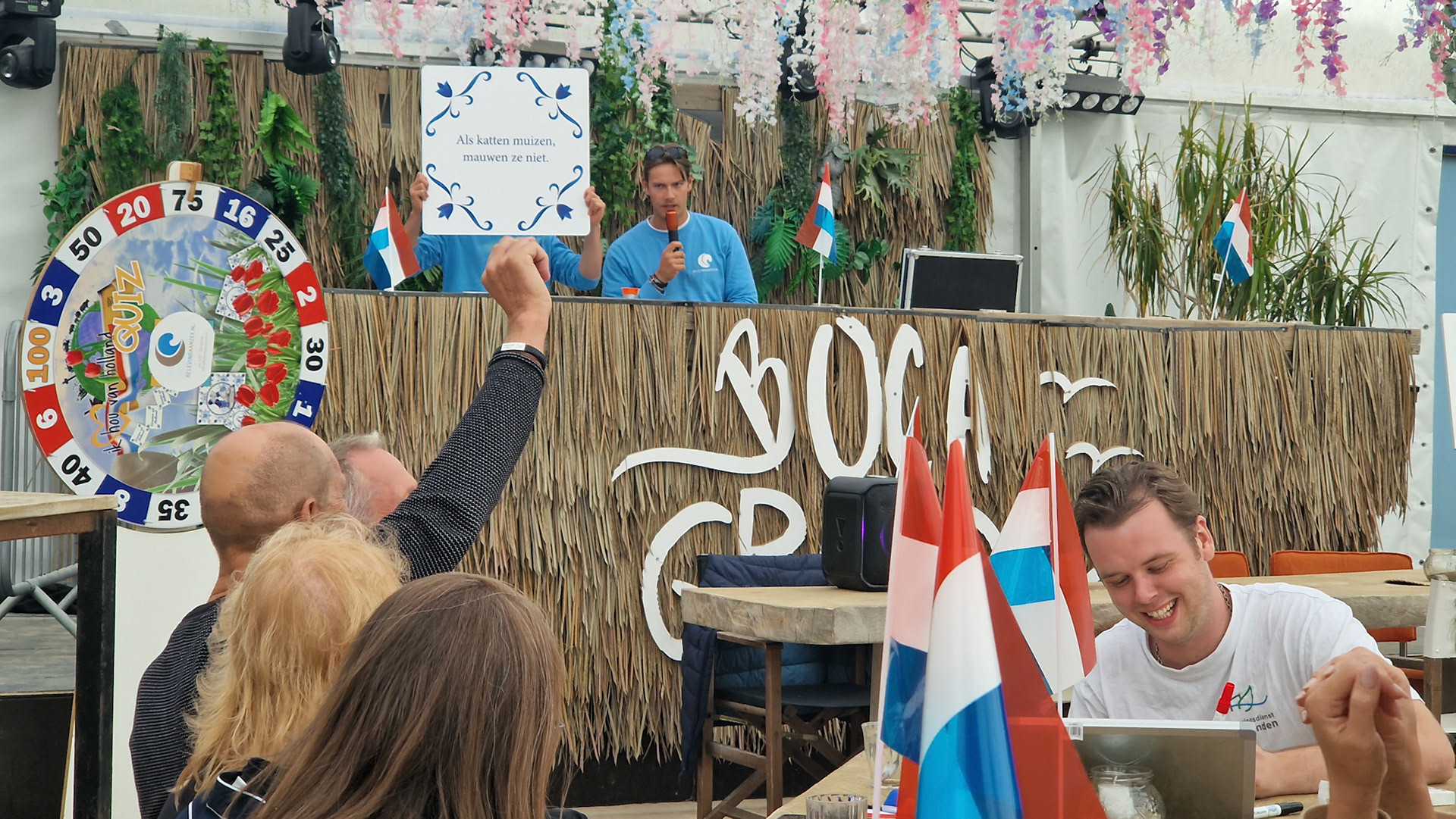 Tijdens de Quiz Ik hou van Holland vormen jullie teams, kiezen jullie een teamcaptain en gaan jullie de strijd met elkaar aan. De quiz bestaat uit een afwisselende mix van kennisvragen, muziekfragmenten, interactieve spellen en verrassende opdrachten. Snelheid, teamwork en een goed gevoel voor humor maken het verschil.