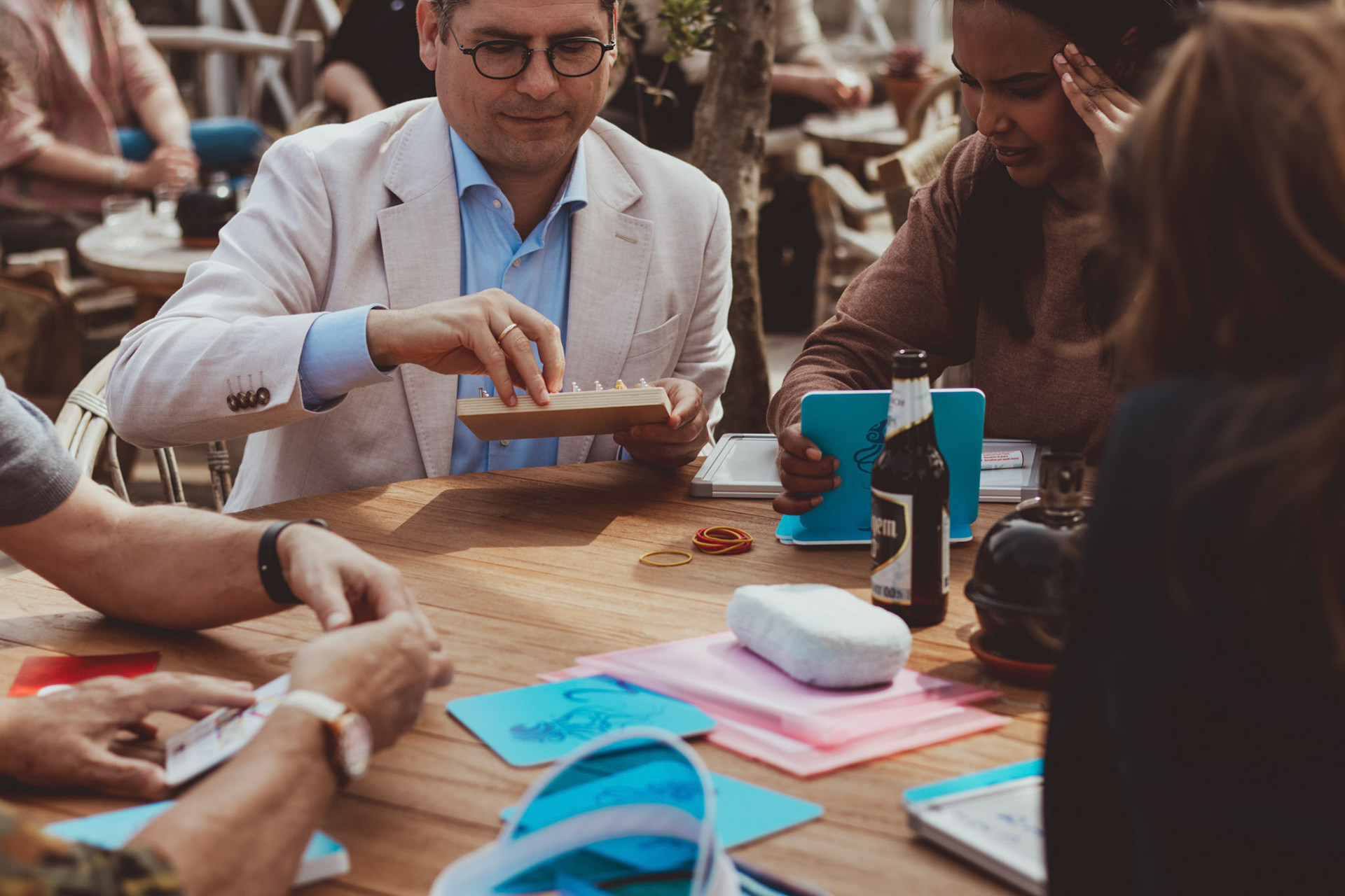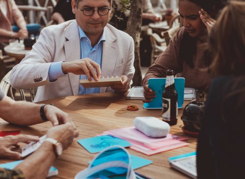 Kwal aan Tafel is gebaseerd op het populaire Kwallenspel, maar speciaal ontwikkeld als indoor of op het terras ervaring. Ideaal voor bedrijven die op zoek zijn naar een spannend en laagdrempelig teambuildinguitje op locatie.